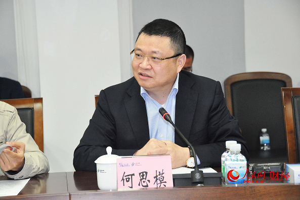 易事特集團(tuán)股份有限公司董事長何思模地向記者介紹機(jī)器換人的好處。(人民網(wǎng) 賈興鵬攝)