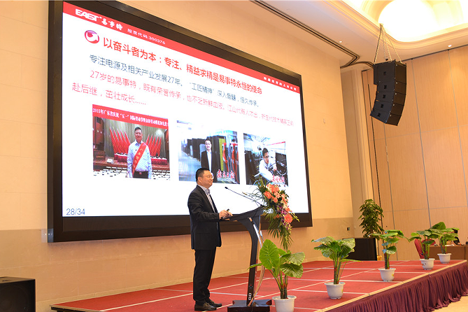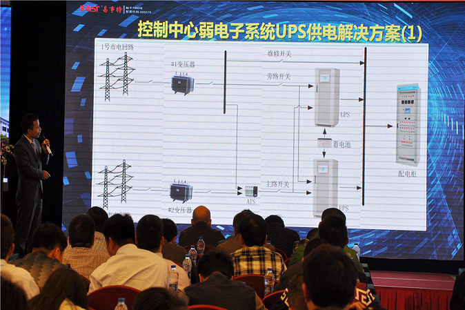 易事特董事長助理、中能易電公司副總經(jīng)理占斯亮向與會嘉賓介紹集團(tuán)的平臺整合優(yōu)勢: