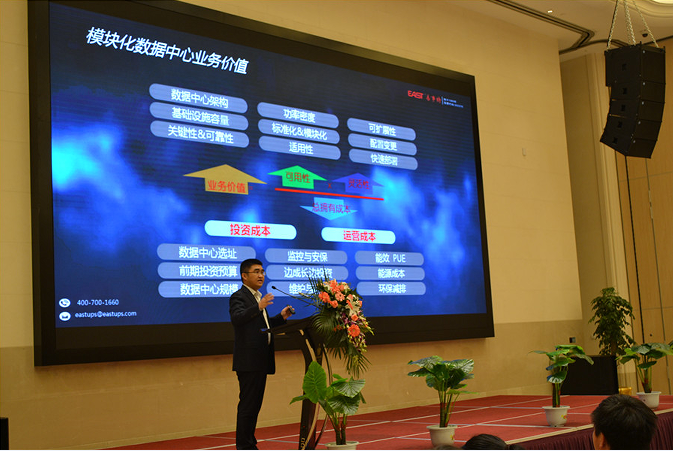易事特IDC數(shù)據(jù)中心事業(yè)部總經(jīng)理陳永華高級工程師向與會嘉賓分析模塊化數(shù)據(jù)中心業(yè)務(wù)價值: