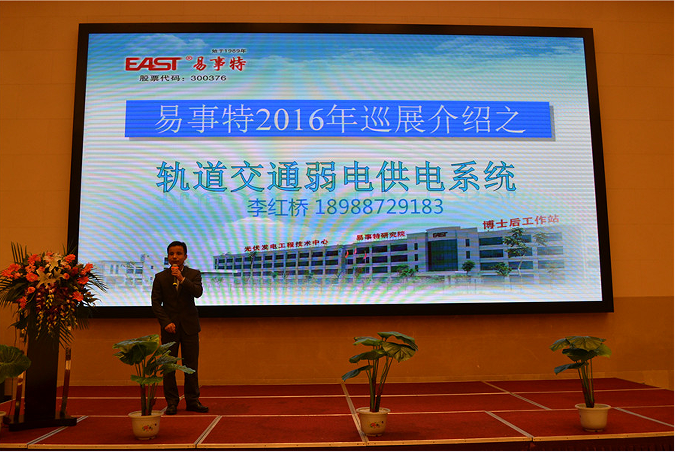 易事特電力系統(tǒng)、軌道交通事業(yè)部副總經(jīng)理李紅橋高級工程師向與會嘉賓介紹易事特軌道交通的全系列產(chǎn)品及整體解決方案: