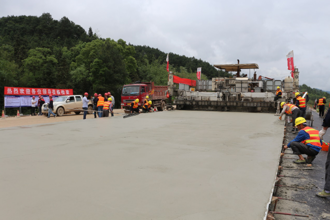 通過近8個(gè)小時(shí)緊張而有序的施工完成193.5米試驗(yàn)段,對試拌、試鋪兩個(gè)階段各項(xiàng)數(shù)據(jù)、工序及流程進(jìn)行全面監(jiān)測,確保整套施工工藝流程完全符合打造一條高強(qiáng)度,抗滑抗沖擊的一級高速路,為全線路面鋪設(shè)提供符合當(dāng)?shù)貧夂蚝瓦m宜溫差環(huán)境的施工數(shù)據(jù),為混凝土路面施工大規(guī)模采用滑模攤鋪施工積累寶貴的經(jīng)驗(yàn),更為年內(nèi)實(shí)現(xiàn)全線竣工通車贏得有效的施工保證。
