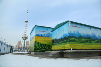 此次公司從設(shè)計方面、技術(shù)方面綜合考慮并保證了新疆漢濱公園項目,在環(huán)保、節(jié)省占地面積、智能操制等方面的總體要求,還著重考慮了周邊環(huán)境的要求,特別采用手繪風景畫裝飾整體35kV模塊化變電站的外殼,使整個變電站與公園環(huán)境融為一體。
