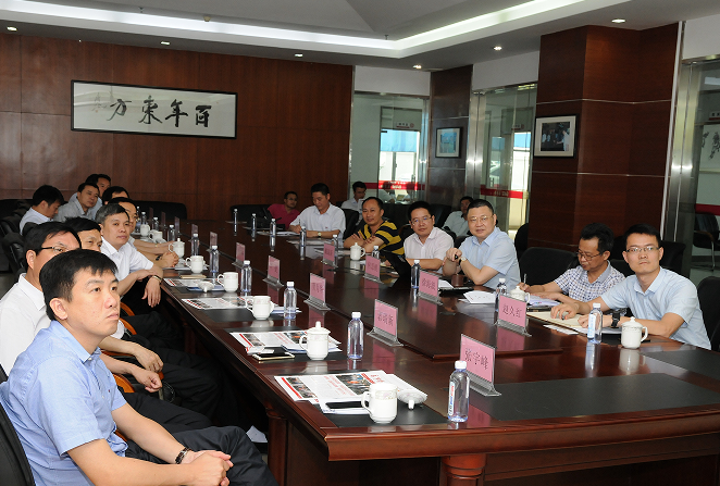 新余市委劉捷書記率領(lǐng)市委常委、秘書長李新華,副市長賀為華,渝水區(qū)委書記徐文泊,市商務(wù)局局長郭瑞新,市委辦副主任彭勇,渝水區(qū)常委、副區(qū)長張宇峰,市商務(wù)局招商中心主任胡亮,渝水區(qū)仙來管委會書記彭毅,渝水區(qū)下村工業(yè)基地書記艾韋,渝水區(qū)商務(wù)局局長劉斐,市經(jīng)開區(qū)書記皮小峰等領(lǐng)導蒞臨易事特考察交流。易事特董事長何思模教授、副董事長徐海波博士、董事會秘書趙久紅、董事長助理戴謀新等公司高管熱情接待了考察組一行。