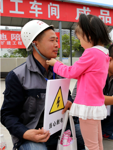 孩子們親手為父母?jìng)兯蜕狭司臏?zhǔn)備的小禮物。他們用稚氣的畫(huà)、充滿(mǎn)愛(ài)意的詞語(yǔ),表達(dá)對(duì)父母深深的愛(ài)。2歲半的段宇杰在爸爸的陪伴下玩的十分高興,對(duì)她來(lái)說(shuō),很少回家的爸爸的陪伴十分珍貴,她舍不得離開(kāi)爸爸寬闊有力的懷抱...... 孩子們和父母一起做游戲,比賽快速識(shí)別工地安全警示標(biāo)志,用稚嫩的小手幫父母系好安全帶,幫父母戴上安全帽。孩子們舉動(dòng)讓年輕的父母與在場(chǎng)職工們動(dòng)容。