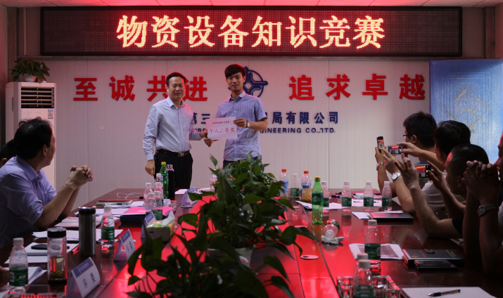 有獎競猜知識競賽將交流會推向了高潮。物設(shè)部人員分成三小組分別選出小組長,由局、公司、總部組成評委組,將每一道競賽試題投進抽題箱,再現(xiàn)場制定游戲規(guī)則,采取公平公正有效競答,設(shè)置小組獎、個人獎,獎品為一個保溫杯、小水杯或筆記本等。主持人是非專業(yè)的,評委組是臨時拼湊的,規(guī)則是現(xiàn)場制定的,試題是大家集思廣益收集的,獎品是九標(biāo)奉獻的,在這樣一場沒有規(guī)則即是規(guī)則的知識競賽中,大家踴躍參與,爭先搶答,在歡快活躍的氛圍中賽出了自己的水平,既體現(xiàn)了團隊合作的默契精神,又加強了個人掌握要點知識的牢固性,讓大家在活躍的氛圍中表現(xiàn)出自己的真性情,加深了局、公司、項目之間的直面印象。物設(shè)部許鵬經(jīng)理說這是一公司開展的首次創(chuàng)新型知識競賽,這樣的競賽要多舉辦,要常態(tài)化。
