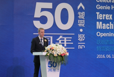 特雷克斯高空作業(yè)平臺(tái)事業(yè)部大中華區(qū)總經(jīng)理Clint Weber先生現(xiàn)場(chǎng)致辭