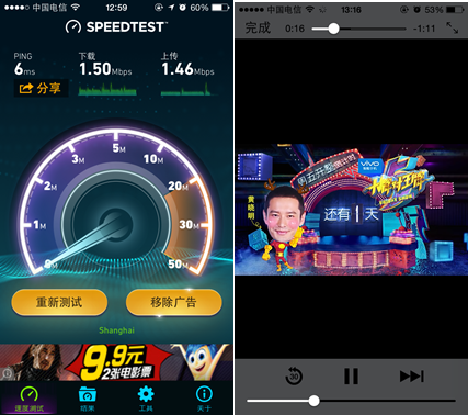 在最早開通地鐵Wi-Fi的13號(hào)線 的實(shí)測場景中,測速軟件Speedtest顯示,平均下載速率為1.5Mbps,上傳速率也有1.46Mbps,平均延時(shí)6毫秒左右,自站廳登錄之后,在地鐵運(yùn)行全線沒有出現(xiàn)斷網(wǎng)現(xiàn)象,打開網(wǎng)頁非常流暢,視頻播放也沒有遭遇卡頓問題。