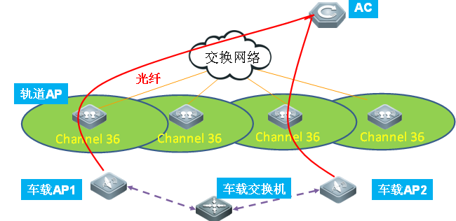 具體來講,軌旁AP工作在相同頻率,也發(fā)出相同的BSSID,所有的報(bào)文處理和交互,由AC統(tǒng)一協(xié)調(diào)。而對(duì)于車載AP來說,則可以把整網(wǎng)的軌旁AP看成一個(gè)“虛擬的大AP”。