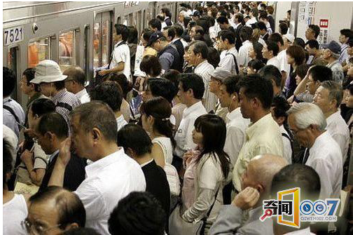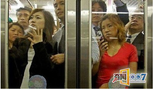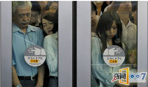 可憐的女孩,被貼在玻璃上。日本的婦女地位很低,因此擠地鐵時(shí)男人沒有謙讓的習(xí)慣。因此七十年代發(fā)生了好幾起婦女被擠傷事件。由于過于擁擠,地鐵為了保護(hù)女士和兒童專門開設(shè)了婦女專用車廂。后來這個(gè)車廂撤銷了。