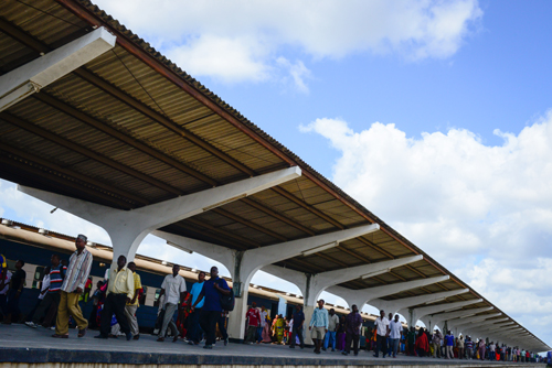2016年5月31日,乘客走出位于坦桑尼亞的坦贊鐵路達累斯薩拉姆車站。坦贊鐵路東起東非坦桑尼亞港口城市達累斯薩拉姆西至南部非洲贊比亞中部的卡皮里姆波希,全長1860.5公里,由中國政府提供無息貸款援建。它是中國最大援外成套項目之一,中國曾先后派遣工程技術(shù)人員5萬人次。新華社記者 翟健嵐 攝