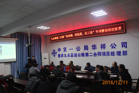 (記者 常魁星 通訊員 安騰飛)12月11日,中交一公局重慶九永高速公路二分部召開“防坍塌、防墜落、反三違”安全專項整治活動宣貫會,安排布置安全工作。深刻吸取近期國內重特大安全事故經驗教訓,有效防范和堅決遏制重特大事故的發(fā)生,促進項目安全生產形勢良好穩(wěn)定發(fā)展,促進項目落實安全生產主體責任,夯實項目安全生產基礎,提高施工安全標準化水平,全面推進“平安工地”建設常態(tài)化,治理糾正各類“三違”行為。