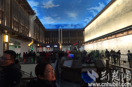 漢正街站用"藍(lán)天白云"裝點(diǎn)站廳,在地下重現(xiàn)漢正街實(shí)景。記者 瞿祥濤 攝