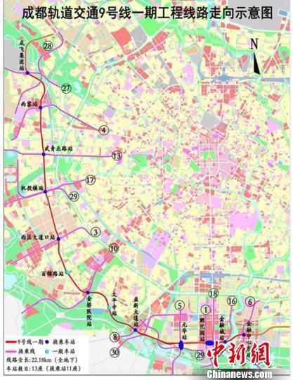 9號線一期工程金融中心東站(含)至成飛集團站(含),位于成都市3.5環(huán)西南半環(huán),線路全長約22.1公里,均為地下線。按順時針沿線主要途經(jīng)江家堰、錦城大道、太平寺片區(qū)、簇錦路、武侯大道、成飛路,設(shè)地下車站13座,其中換乘站11座,一期設(shè)元華停車場和武青車輛段和主變電所2座。